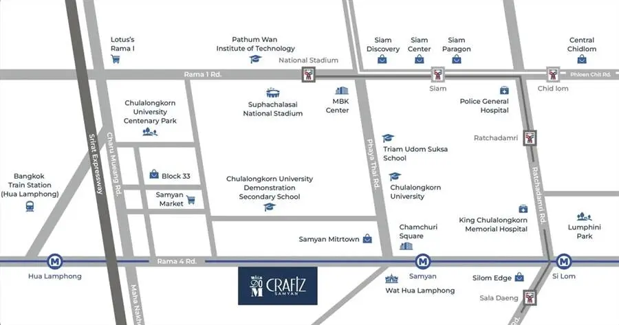 โครงการตั้งอยู่ติด ถ.พระราม 4 แขวงมหาพฤฒาราม เขตบางรัก กรุงเทพฯ ใกล้ทางด่วนศรีรัช และ MRT สายสีน้ำเงิน ทั้งสถานีหัวลำโพงและสถานีสามย่าน เชื่อมต่อได้กับ ถ.บรรทัดทอง, ถ.พญาไท, ถ.สี่พระยา และ ถ.สีลม เป็นทำเลใจกลางเมืองที่อยู่ใกล้ทั้ง จุฬาลงกรณ์มหาวิทยาลัย แหล่งธุรกิจในย่านสีลม และย่านไลฟ์สไตล์อย่างสยาม - ราชประสงค์
