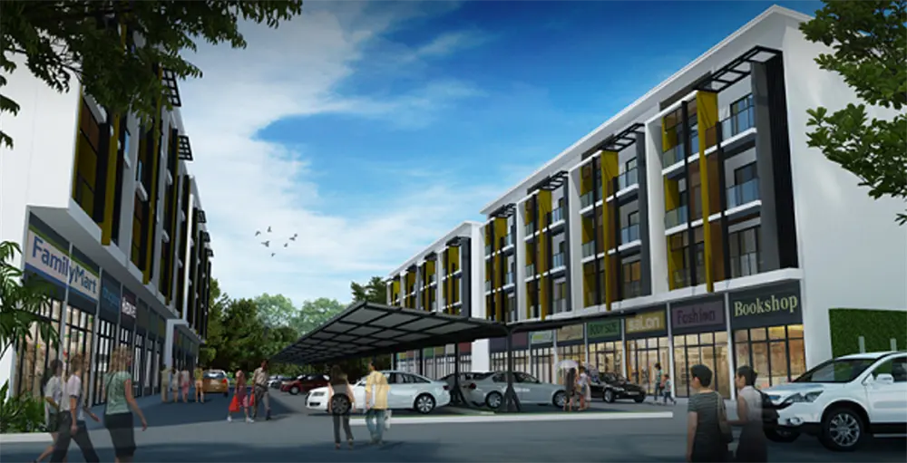 ทำเลที่ตั้งชองโครงการติดริมถนนใหญ่ ด้านหน้าโครงการเป็นอาคารพาณิชย์ มีศักยภาพในอนาคต
